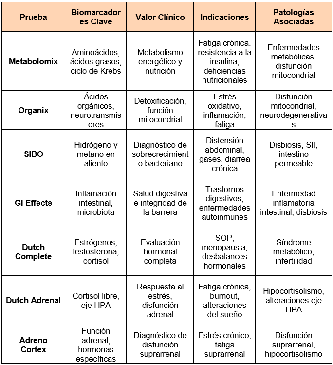 - Valor clínico: Evaluación de la función mitocondrial, capacidad de desintoxicación y metabolismo energético.