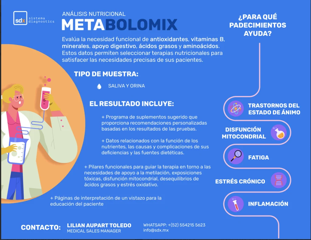 El Metabolomix+ es una combinación única de pruebas nutricionales que proporciona un análisis de biomarcadores nutricionales clave.