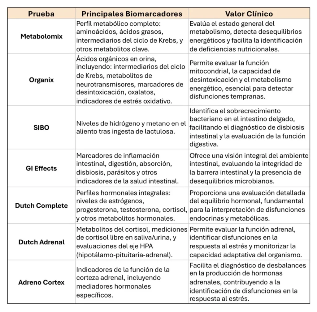 Para que de manera sencilla tengas un panorama completo del alcance y aplicación en la práctica clínica de las pruebas más utilizadas por los médicos que ya están a la vanguardia utilizando el enfoque de la Medicina Funcional, te dejamos esto: