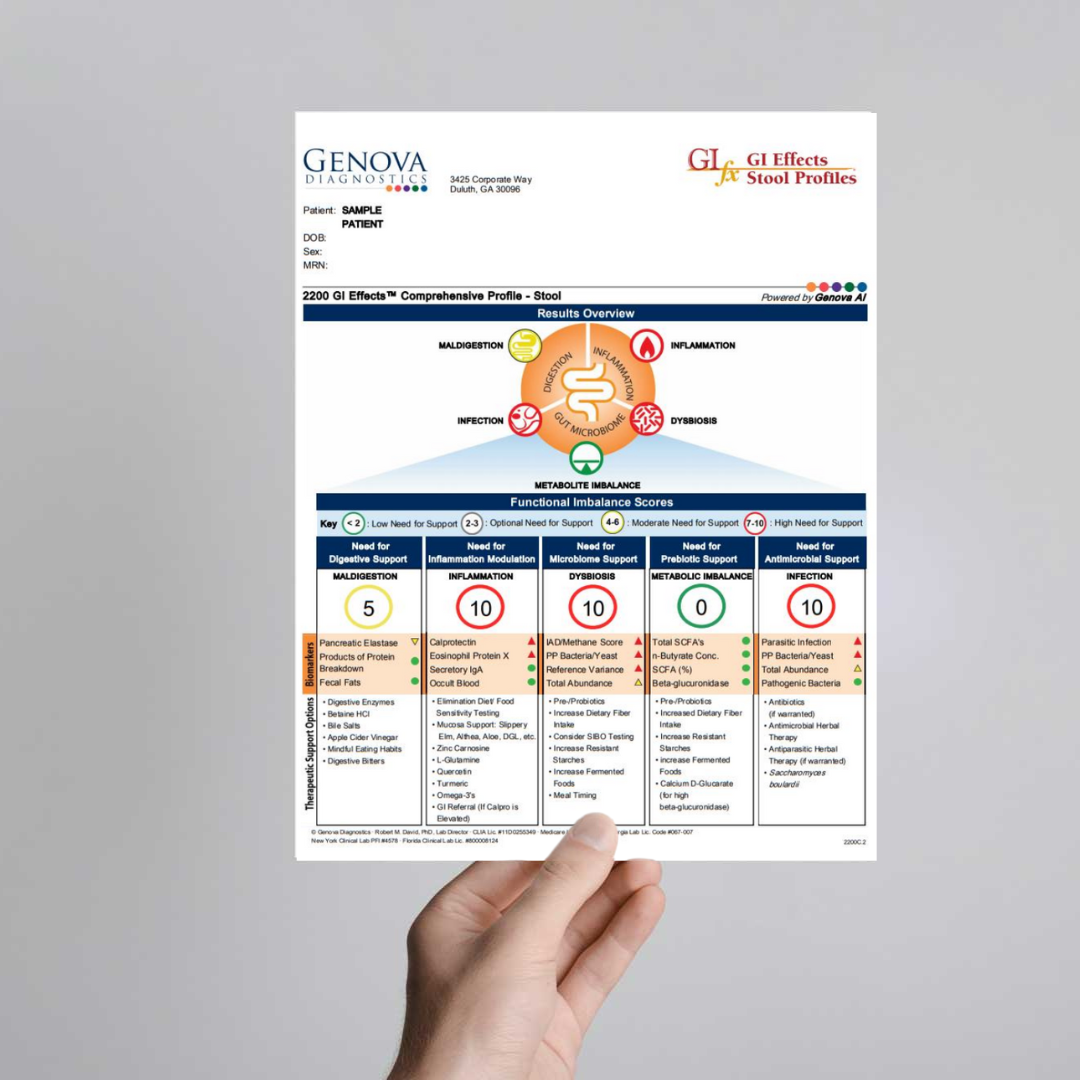 GI Effects® es una evaluación integral de la salud completa del tracto gastrointestinal, que analiza la causa principal de la mayoría de los problemas gastrointestinales.